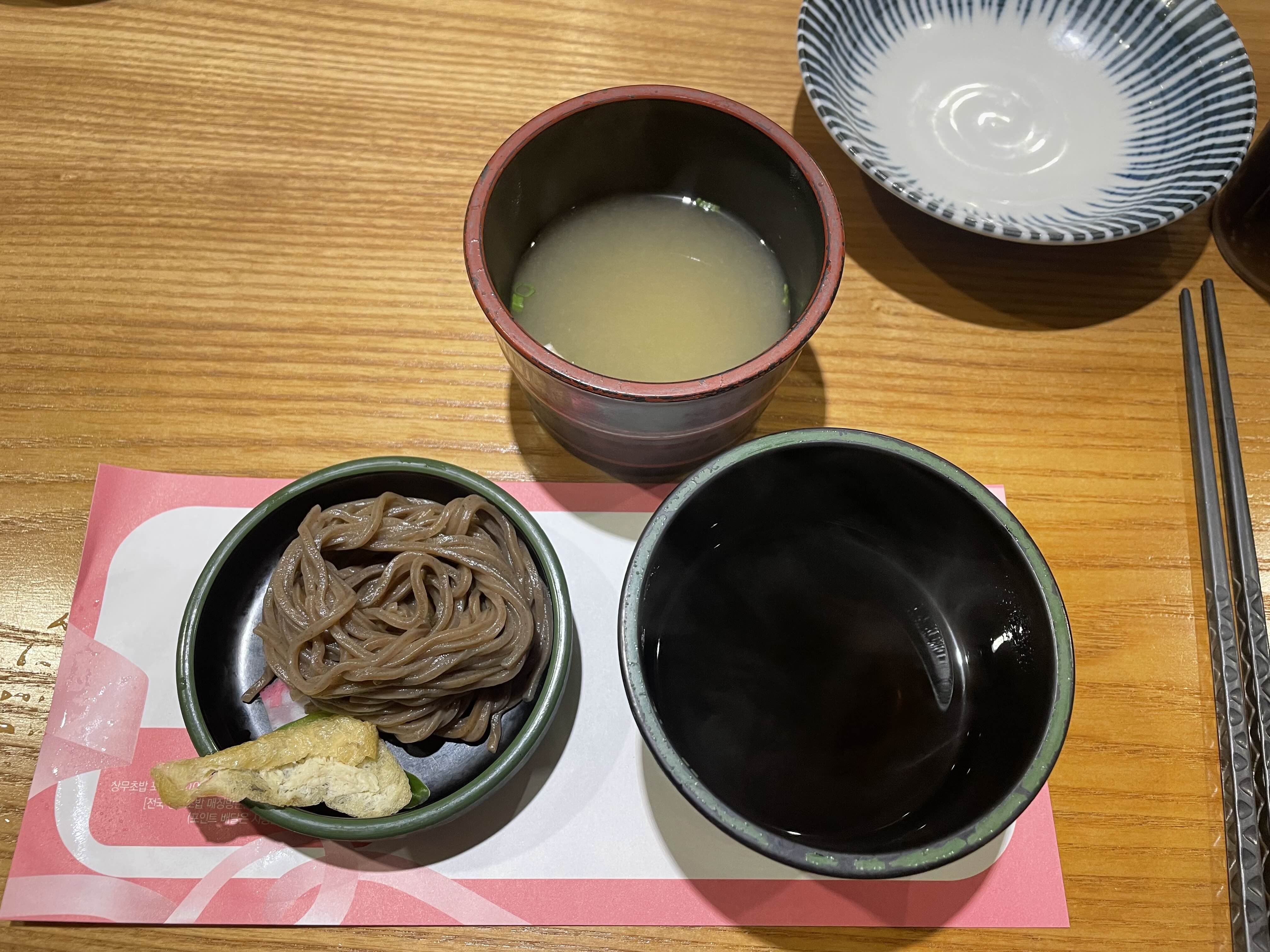 처음에 메밀소바와 미소 된장국이 나온다.