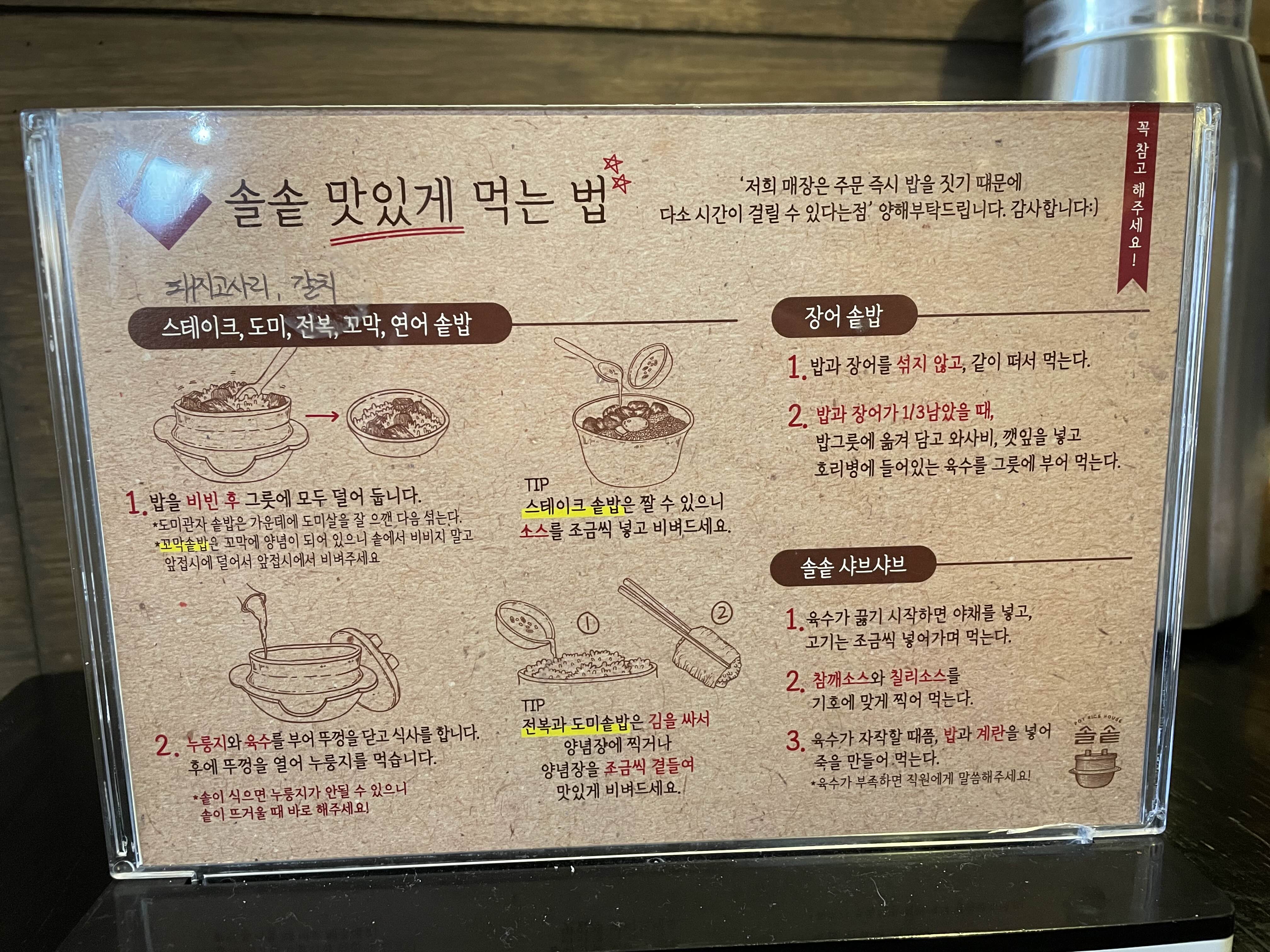 솥밥 먹는 방법도 나와있다.