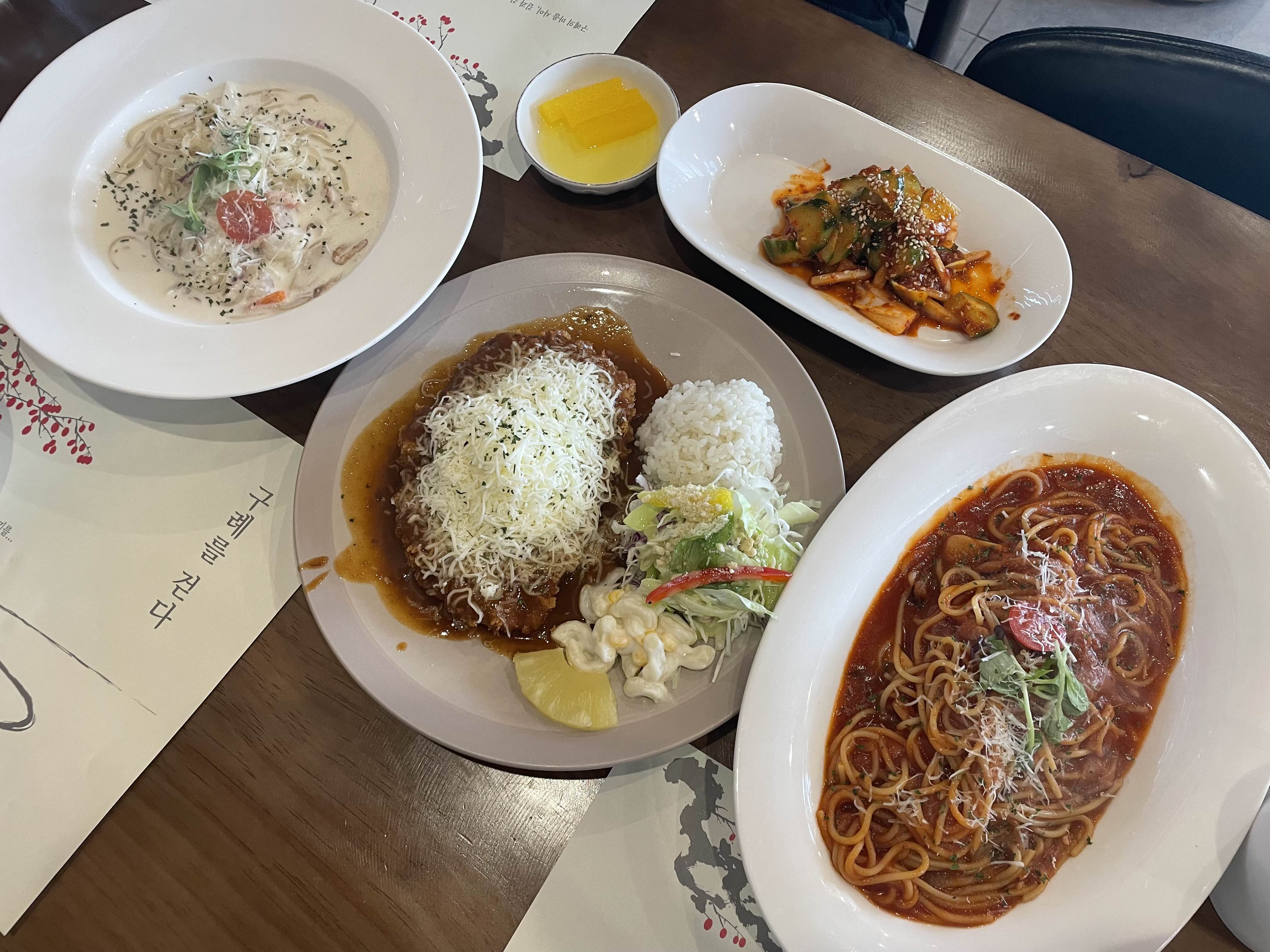 돈가스, 파스타 둘 다 넘 맛있게 먹었다.